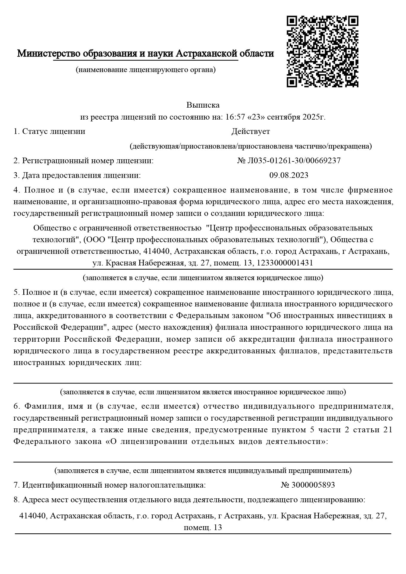 Лицензия на образовательную деятельность №Л035-01261-30/00669237