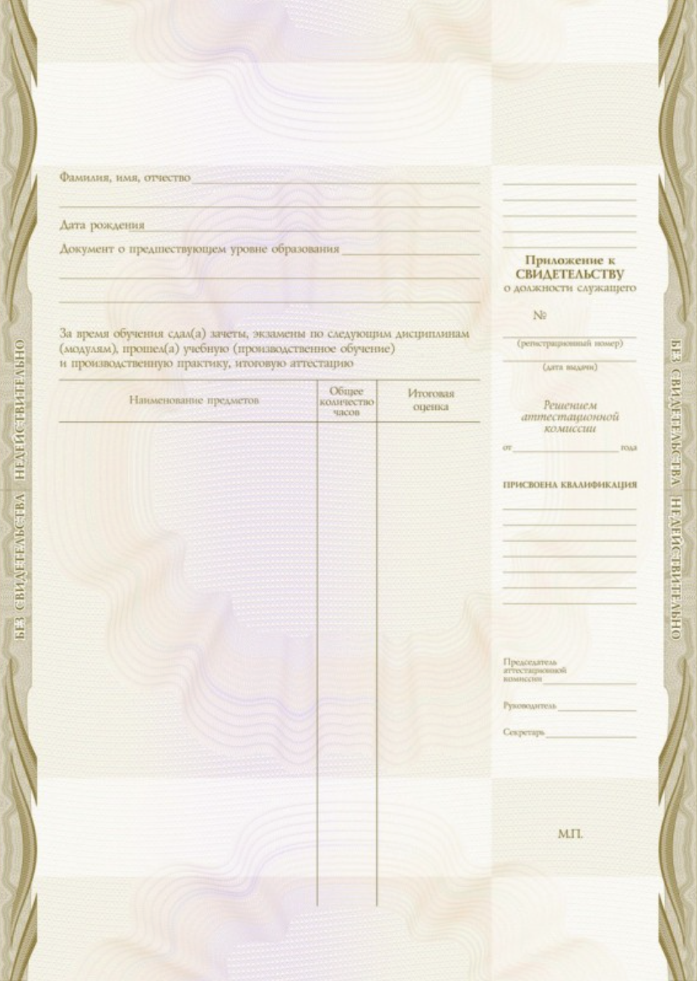 Документ об образовании: Свидетельство о профессиональном обучении (свидетельство о профессии рабочего, должности служащего).